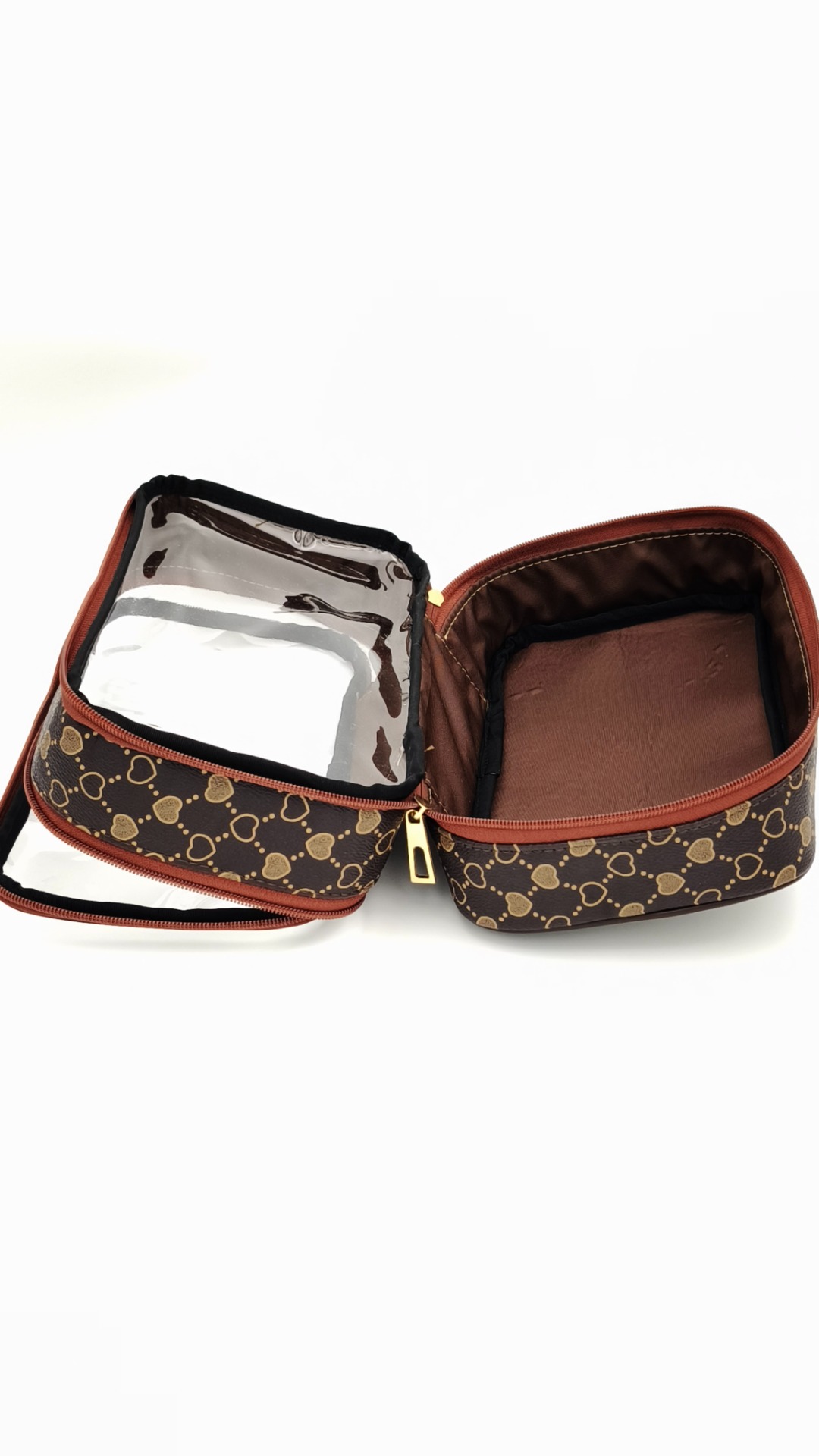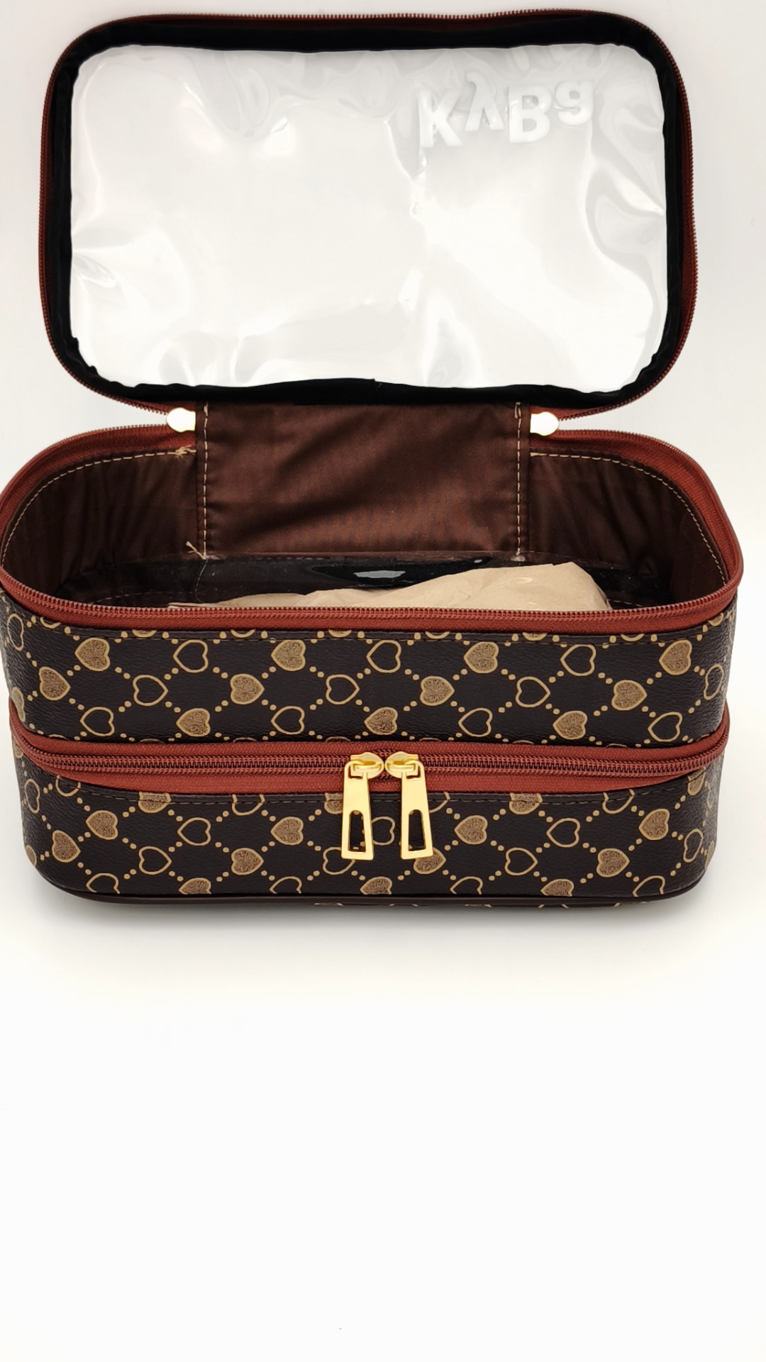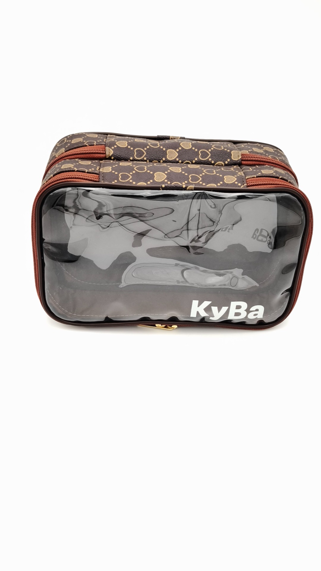 Dupla rekeszes kozmetikai táska. Felső és a középső része teljesen átlátszó, így láthatod melyikbe milyen kozmetikai dolgokat tettél.