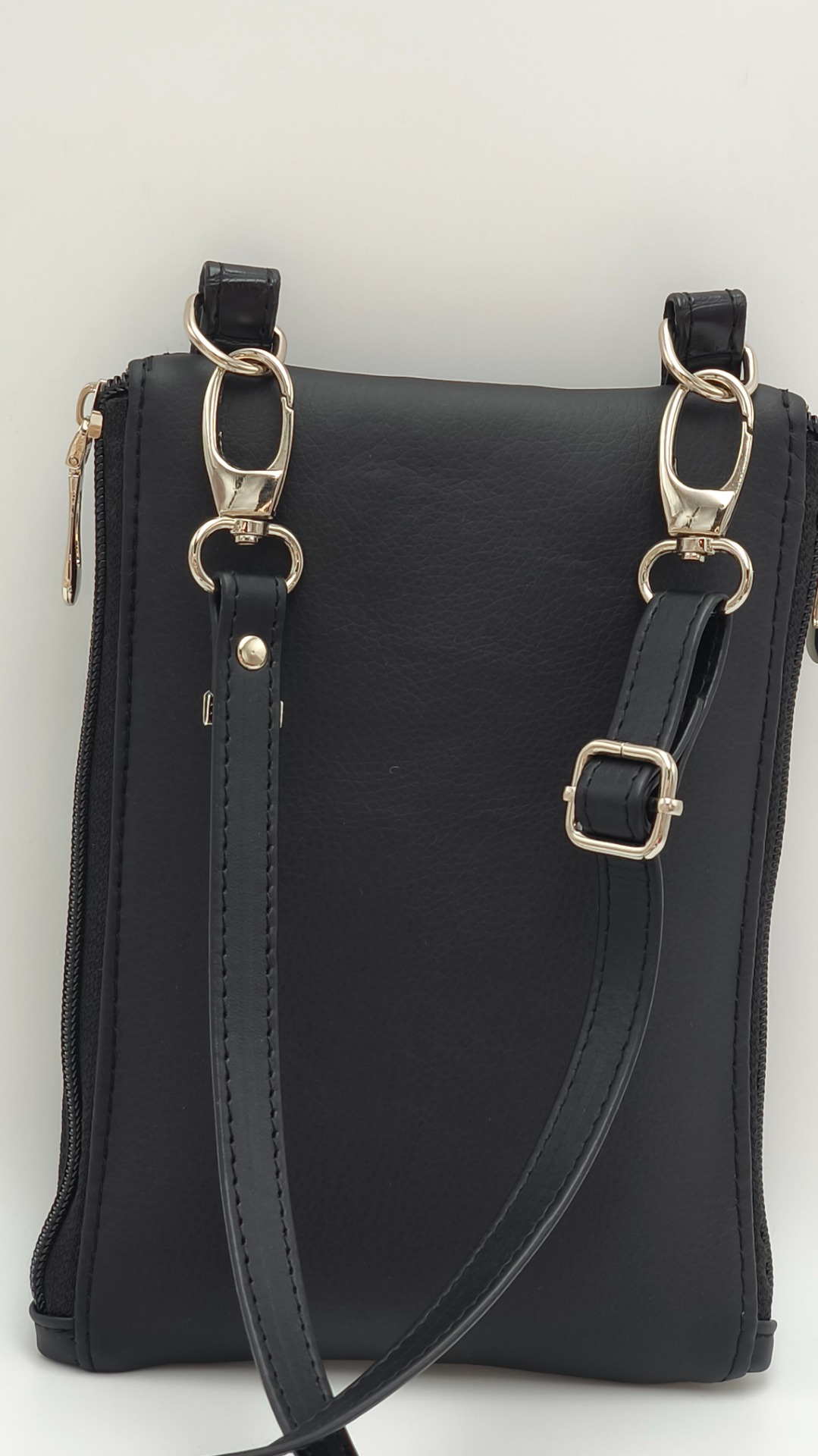 Modern, letisztult kialakítású keresztpántos táska, amely elegáns megjelenést és praktikus használatot kínál a mindennapokra. Két oldalsó cipzáras zsebében, elülső patentos rekeszében nagyméretű telefon is belefér és minden apróság könnyen elfér és átláthatóan rendszerezhető. Kompakt, mégis jól pakolható darab, állítható pánttal a kényelmes viseletért.