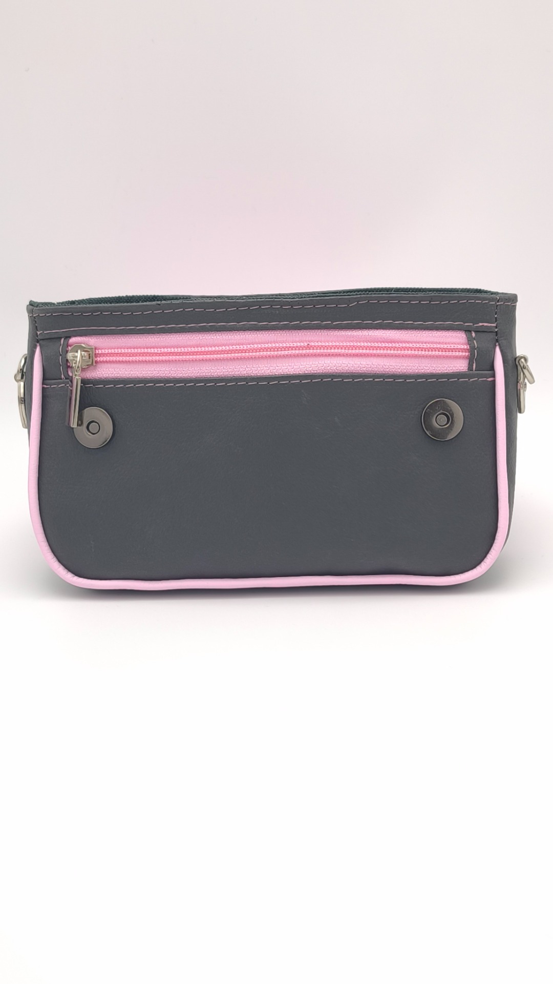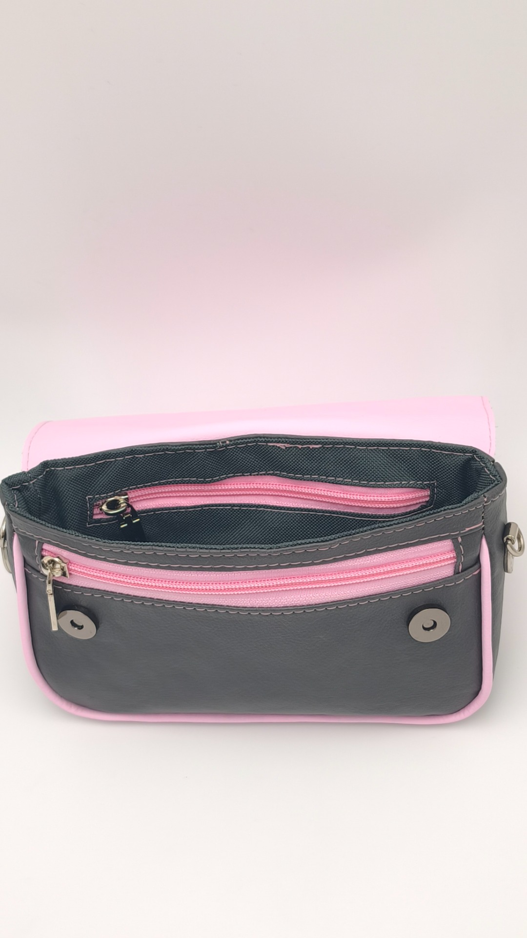 Ez a különleges Esmaralda táska a mindennapok praktikus és divatos kiegészítője. A rózsaszín és szürke színkombináció friss, nőies megjelenést kölcsönöz, miközben a letisztult forma bármilyen öltözékhez remekül illik.