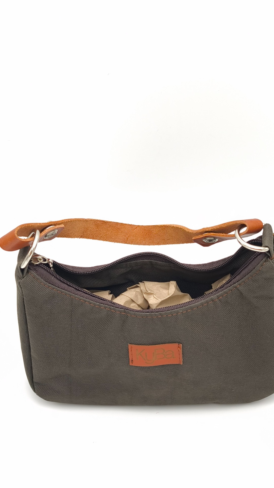 Ez a sötétbarna vászon anyagból készült KyBa kézitáska elegáns és praktikus választás a mindennapokra. Kompakt méretének és letisztult formájának köszönhetően könnyen kombinálható bármilyen öltözékkel.